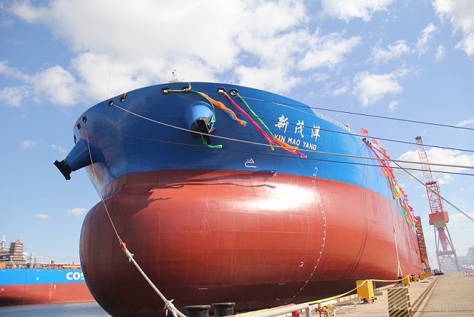 DSIC held a naming ceremony for No.76 308k DWT VLCC constructed for COSCO Shipping Energy on Oct.11, where CSIC Deputy General Manager He Jiwu, DSIC leaders Yang Zhizhong and Deng Changlian attended the ceremony and the distinguished guest Madam Yu Yang named the vessel as Xin Mao Yang.