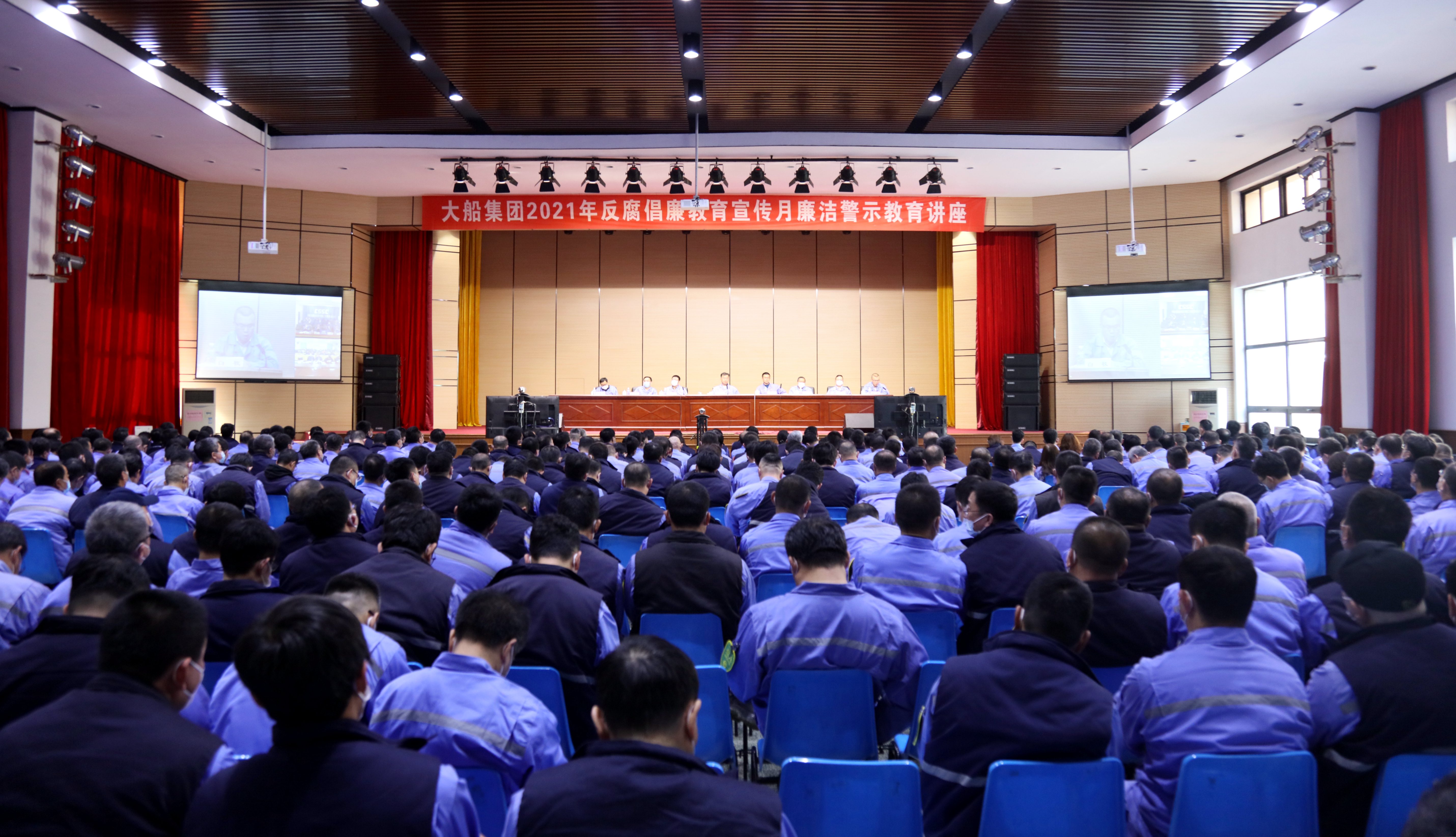4月6日,中国船舶大船集团开展2021年反腐倡廉教育宣传月廉洁警示教育讲座,纪委书记白牧为科级副职及以上党员干部讲授一堂题为《以案为鉴警钟长鸣,锤炼党性砥砺前行,以新时代新作为助推大船集团高质量发展》的专题党课。