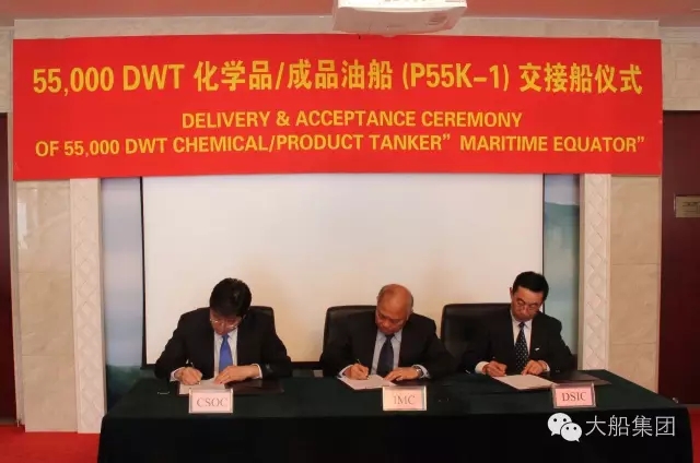 5月12日,大船集团为新加坡万邦集团建造的5.5万吨化学品/成品油船首制船签字交工。大船集团、万邦集团、中国船贸三方代表在交接船证书上签字。 该船是万邦集团与大船集团签订3艘5.5万吨化学品/成品油船的首制船,在项目建造中,大船集团相继实现了11天合拢138个分段、轴系负荷调整仅1天便满足交验状态、7天完成航海试任务等多项亮点。该船的顺利交工不仅是万邦集团与大船集团携手并进精诚合作的见证,更为双方未来的深入发展奠定了良好基础。