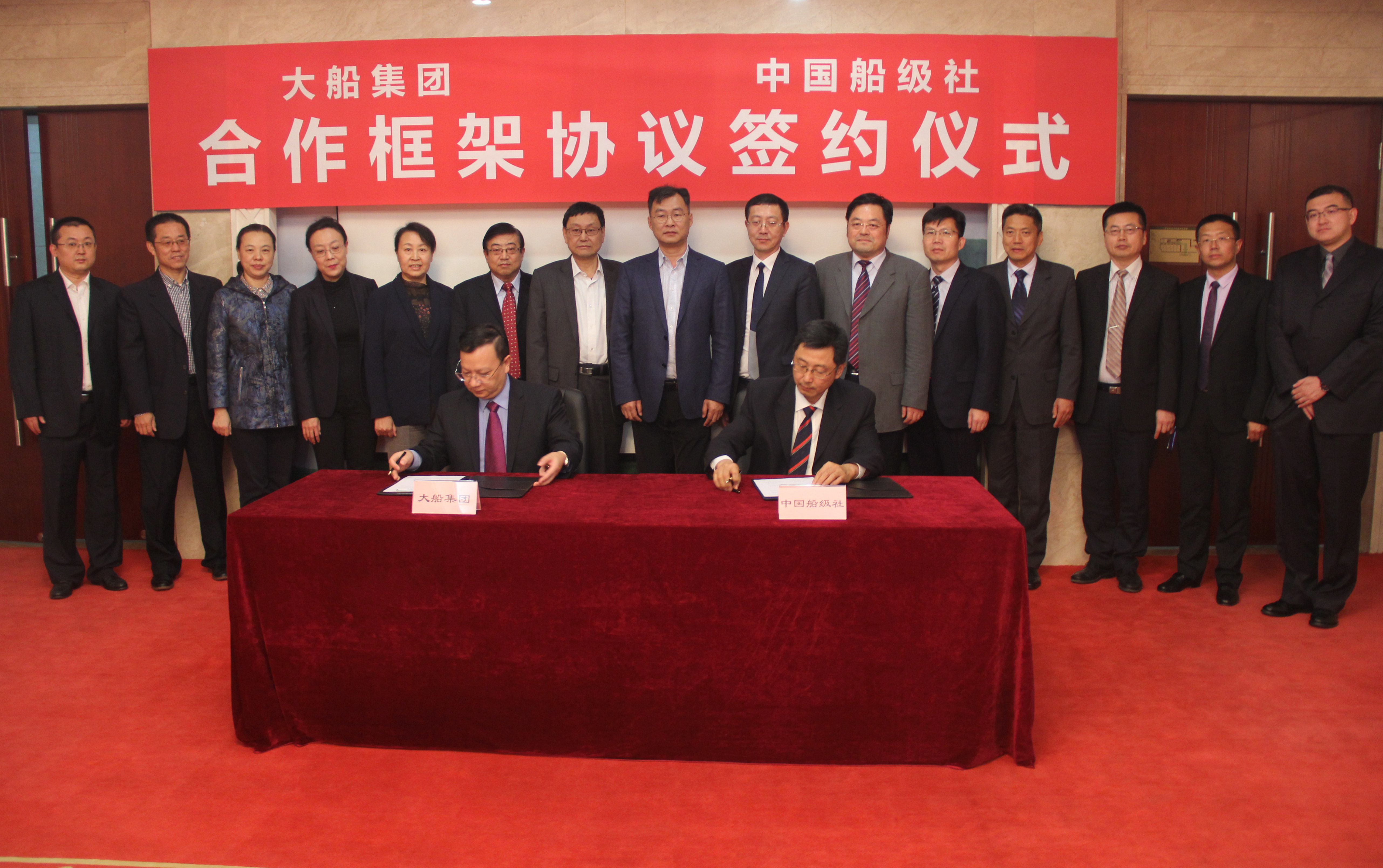 10月29日,大船集团与中国船级社举行合作框架协议签约仪式,双方代表在合作框架协议书上签字。中国船级社党委副书记、副总裁孙峰,大船集团领导杨志忠、郑炜、张玉环及相关部门负责人出席仪式。